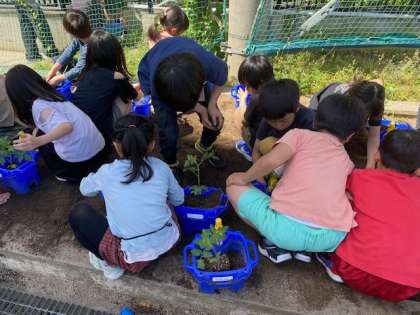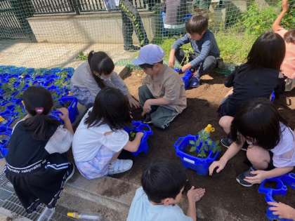 2年生の生活科では、トマトの苗を植えました。これからトマトの成長ぶりを観察していきます。