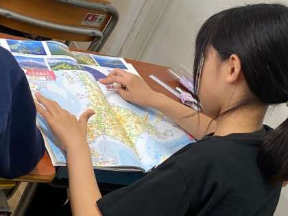 その後、地図帳を開き、地図帳で全国各地の山地などの確認も行いました。