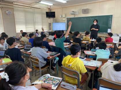 6年生の外国語では、『Welcome to Japan!』ということで、日本のことの中でも、日本の特色の1つである祭りに注目して、どんな祭りがあるのかを紹介しようと取り組んでいました。