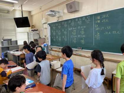 2年生の算数では、2桁+2桁の練習問題にチャレンジしていました。