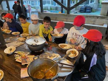 自分たちの手作りカレー、屋外で食べるカレー、友だちと食べるカレーは格別のようです。