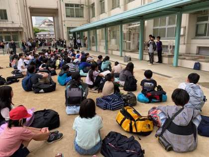 1泊2日の自然体験学習をほぼ予定通りに終え、帰校式を行いました。