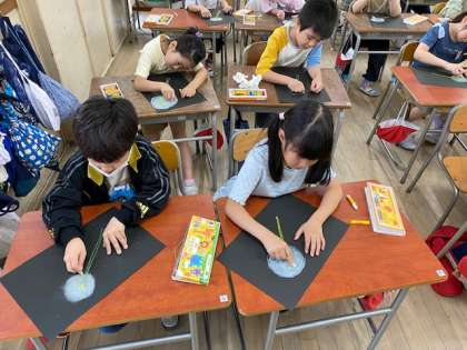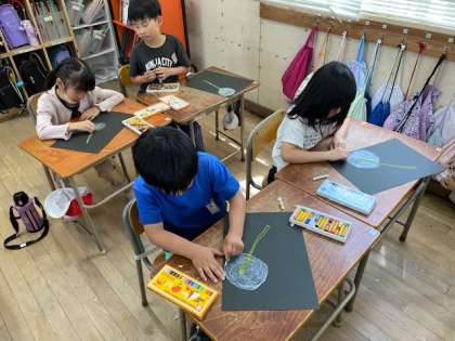 2年生の国語で学習した『たんぽぽ』。子どもたちは、たんぽぽが成長する様子をイメージして、絵に表現していました。