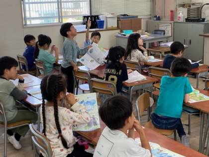 1年生の音楽では、音楽鑑賞を行いました。聞こえるままに踊ってみたり、どのように感じたかを発表し合ったりしていました。