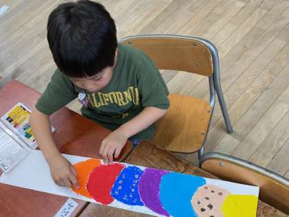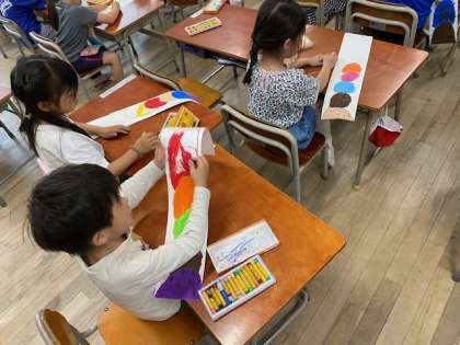 1年生の図工では、パスのいろいろな色を活かしてアイスクリームをかこうと取り組んでいました。