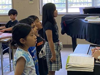 3年生の音楽では、『茶つみ』という曲の歌のテストが行われていました。合格するとベートーベンのスタンプが押されていました。