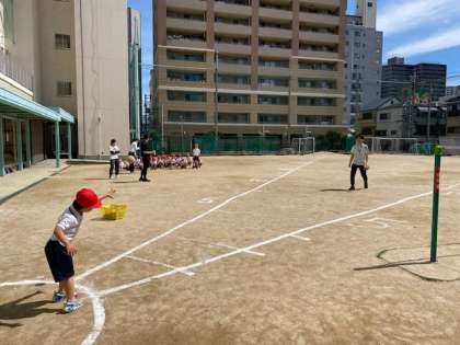 1年生は、今日スポーツテストとしてソフトボール投げにチャレンジしました。