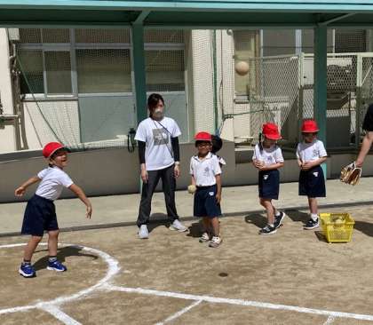 なんと、ボールを受け止める先生は、昨年度寄贈していただいた『大谷グローブ』でキャッチしていました。