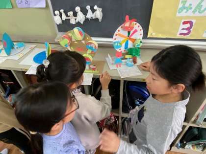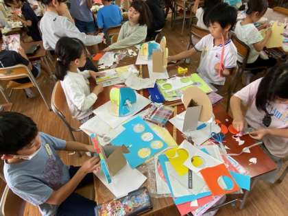 3年生の図工では、『うごいて楽しい わりピンワールド』と題した、製作に取り組んでいます。
