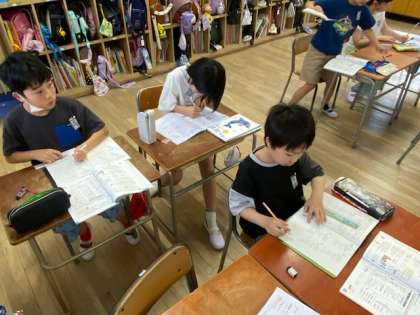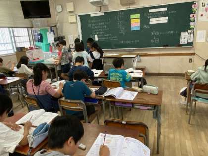 問題が解けた子は、先生に丸付けをしてもらっていました。