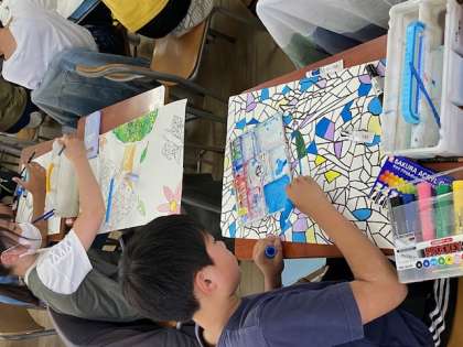 下がき段階では分からなかったのですが、色着けをしていくと、鮮やかに網の目のようなデザインの中の虫が浮かび上がっている子もいました(^^)