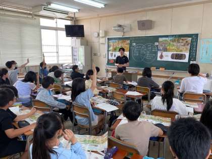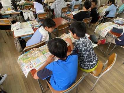 使っていた道具、飾りつけ、動物の様子など細かい違いや、与えられたデータから人口の変化などについても発見して、活発に発表していました。