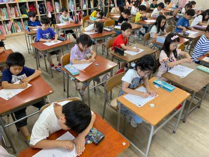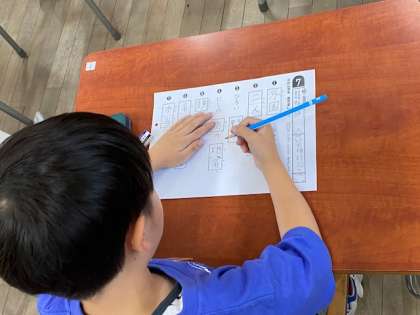 教室をのぞいてみると、漢字テストをしていました。