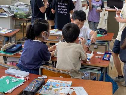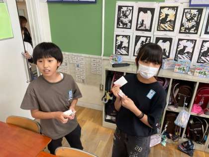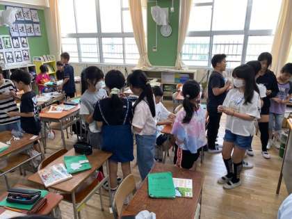 5年生の外国語では、誕生日プレゼントに何がほしいかをもとに、友だちと英語で交流しました。