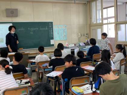 6年生の外国語では、『天ぷら』や『相撲』『柔道』のように、日本語がそのまま英語として使われている言葉を紹介し、どうしてそうなっているかを考えました。