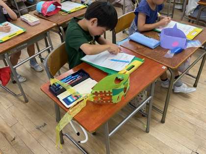 2年生の図工では、輪っかを活かした冠を作ってきました。