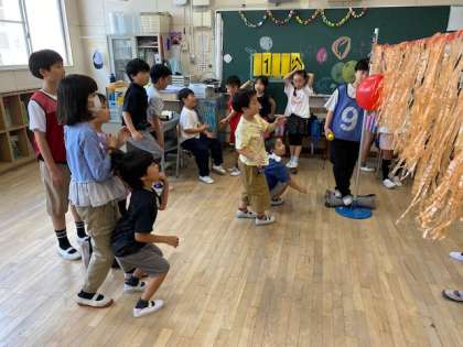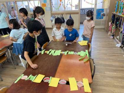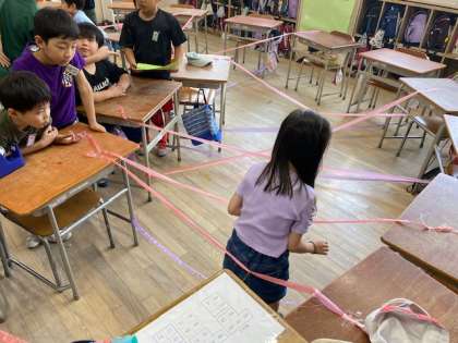 『わくわくゴルフ』では、机のつなぎめに貼った画用紙がねらったコースとは違った方向へ曲げるので、とても難しかったです。でも、それがおもしろさになっていました(^^)