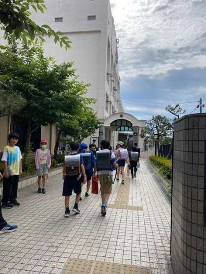 今日の天気は曇り時々晴れ。子どもたちが登校してくる時間の気温は、昨日と同じ22度ですが、日差しが遮られている分、暑さはましです。