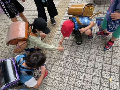 今朝はカナブンが飛んできて、少し盛り上がりました。都会に住む子どもたちには珍しいことのようです(^^)