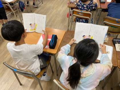 分からないとか意味があいまいな語句の意味を調べた後は、改めてお話を読み、書かれてあることを理解していきました。