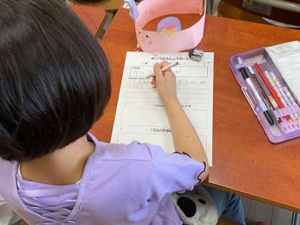 中には冠だけではなく、輪っかを活かしてドレスを作っている子や、鉄仮面のように顔を覆っている子など、工夫したあとがたくさん見られました(^^)