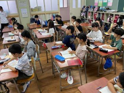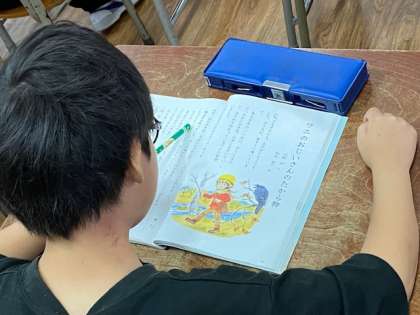 3年生の国語では、『ワニのおじいさんのたから物』というお話について学習していますが、今日は全体の内容を3つに分けることに取り組みました。