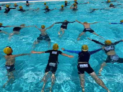 今日は初めてということもあり、水を掛け合ったり、しずんでジャンプしたり、大の字になって浮いてみたりと、水慣れ中心に学習しました。