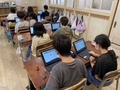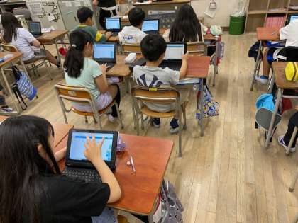 4年生の教室をのぞいてみると、学習者用端末を開けていました。