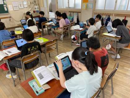 4年生の教室をのぞいてみると、世界の祭りについて調べているところでした。