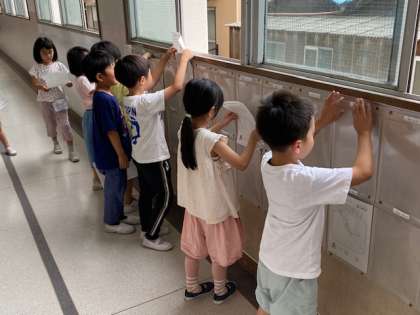 また、先生の指示で廊下に貼ってあるクリアファイルに、先日の『わくわくランド』について書いた記録を入れていました。