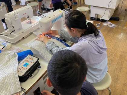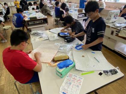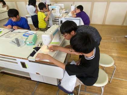 6年生の家庭科では、ナップザック作りにチャレンジしています。