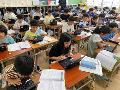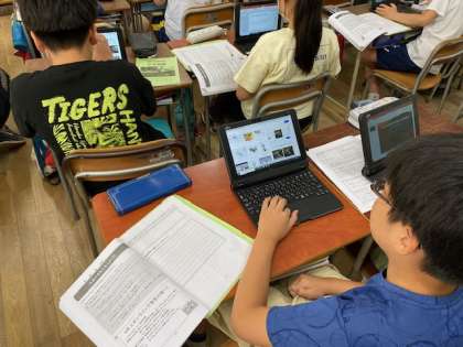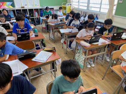 5年生の総合では、『未来の学校を考えよう』ということで、自分が考える未来の学校について、どんなことができる学校としたいか、子どもらなりの発想で考えていました。