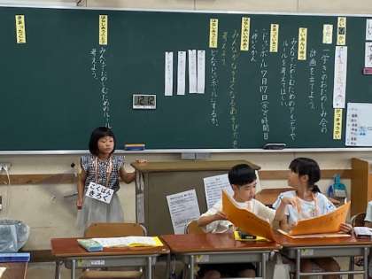 大江小学校では、本年度、特別活動(児童会活動・学級活動・クラブ活動)を通して、話す・聞く・話し合う力を育て、その力を活用することに関する研究しています。
