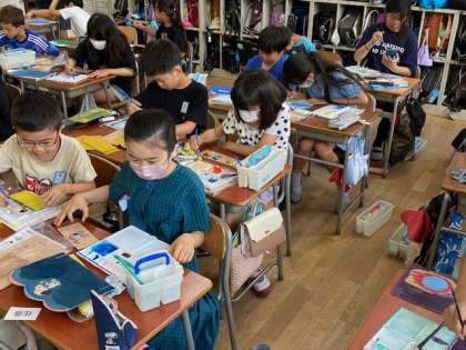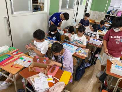 5年生が取り組んできたティッシュボックスの製作もいよいよ終盤戦。色着けに集中していました。