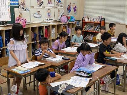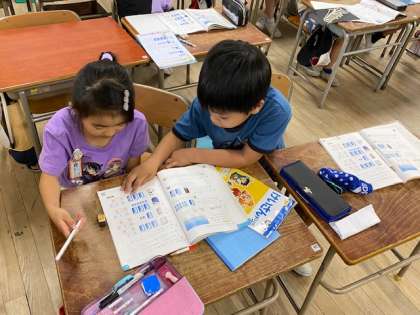 2年生の算数では、『水のかさをはかってあらわそう』の練習問題に取り組んでいました。