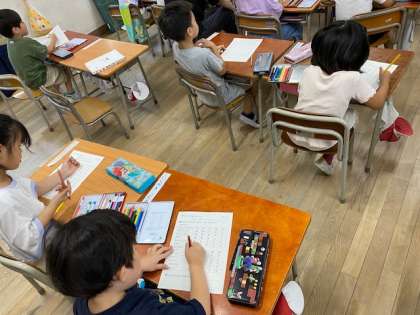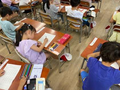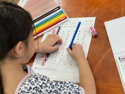 1年生の教室をのぞいてみると、1学期に頑張ったことを振り返っていました。