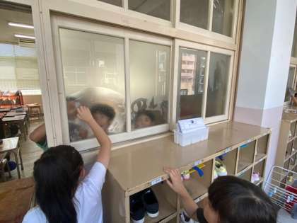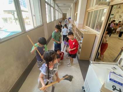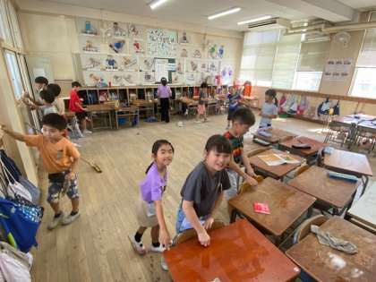 2年生の教室をのぞいてみると、大掃除をしていました。1学期の汚れは1学期のうちに。