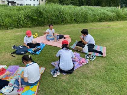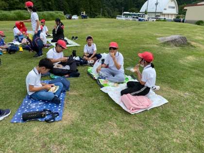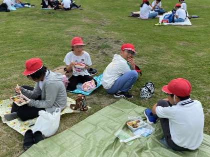入舎式の後は、昼食です。お家から持ってきた弁当を、活動班で食べました。