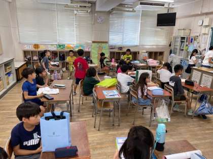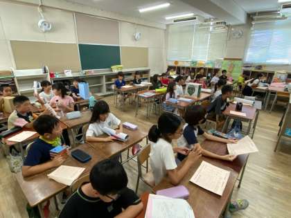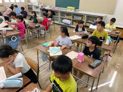 4年生の教室をのぞいてみると、夏休みの宿題を提出しているところでした。