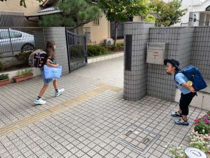 今日から給食も始まり、本格的なスタートです。教科書やノートがしっかり入ったランドセルに「重いー!」との声も聞かれました。