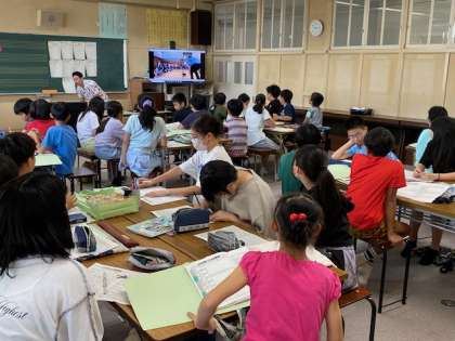 5年生の音楽では、1学期末に行われた音楽集会の鑑賞をしていました。