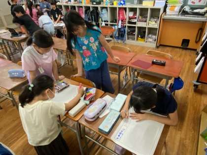 3年生の教室をのぞいてみると、係活動に取り組んでいました。