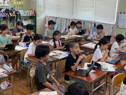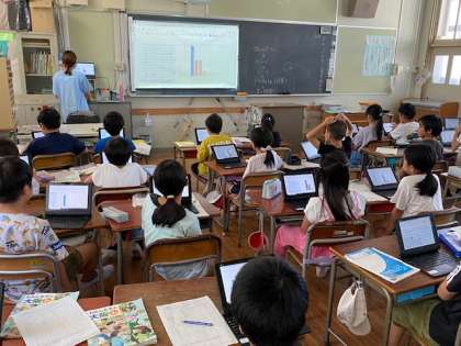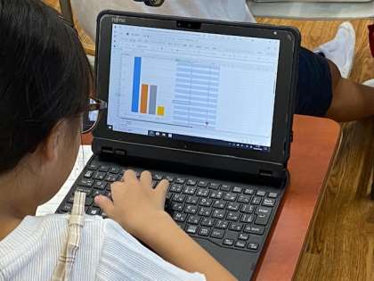 3年生の社会科では、Teamsを使って、夏休みに、買い物に行った回数をお店の種類別にクラスで集計し、グラフで表すことにチャレンジしました。