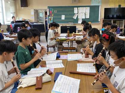 6年生の音楽では、『星の世界』という曲をリコーダーで吹いたり、歌ったりしました。