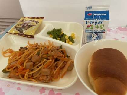 イタリアンスパゲッティ グリーンアスパラガスとコーンのサラダ カレーフィッシュ