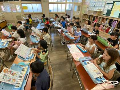 『歌詞の感じを生かして歌いましょう』と先生が伝えると、子どもたちは、秋を楽しむように虫が鳴いている様子を思い浮かべて歌っていました(^^)