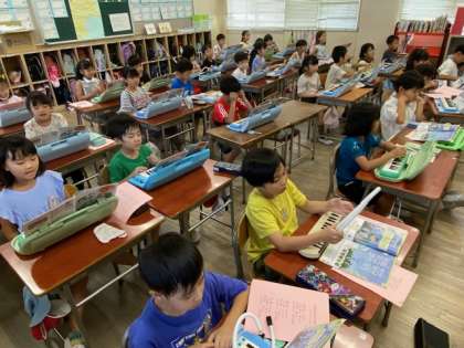 2年生の音楽では、まず校歌を3番まで歌ってから、『虫の声』を歌いました。