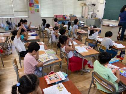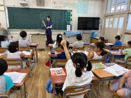 1年生の道徳では、『そろっているけど』というお話を通して、トイレのスリッパやクラスにあるドッジボールなど、みんなで使っているものについて考えました。