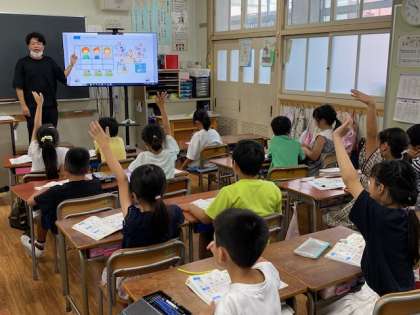 後半は、今日学んだ表現を活かして、クラスの友だちの好きなスポーツ、好きではないスポーツを尋ねていきました。