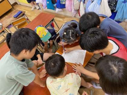 今日の児童集会『なかよし班活動』は、『先生ビンゴ』です。